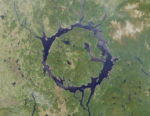 לפני כ-215 מיליון שנה מטאור פגע בפני כדור הארץ ויצר מכתש טבעתי ענק אשר נמצא כיום במזרח קנדה במדינת קוויבק. המכתש שנוצר מורכב משתי טבעות – הפנימית בקוטר 70 ק”מ והחיצונית 100 ק”מ – והוא מכתש המטאור השישי בגודלו בעולם.